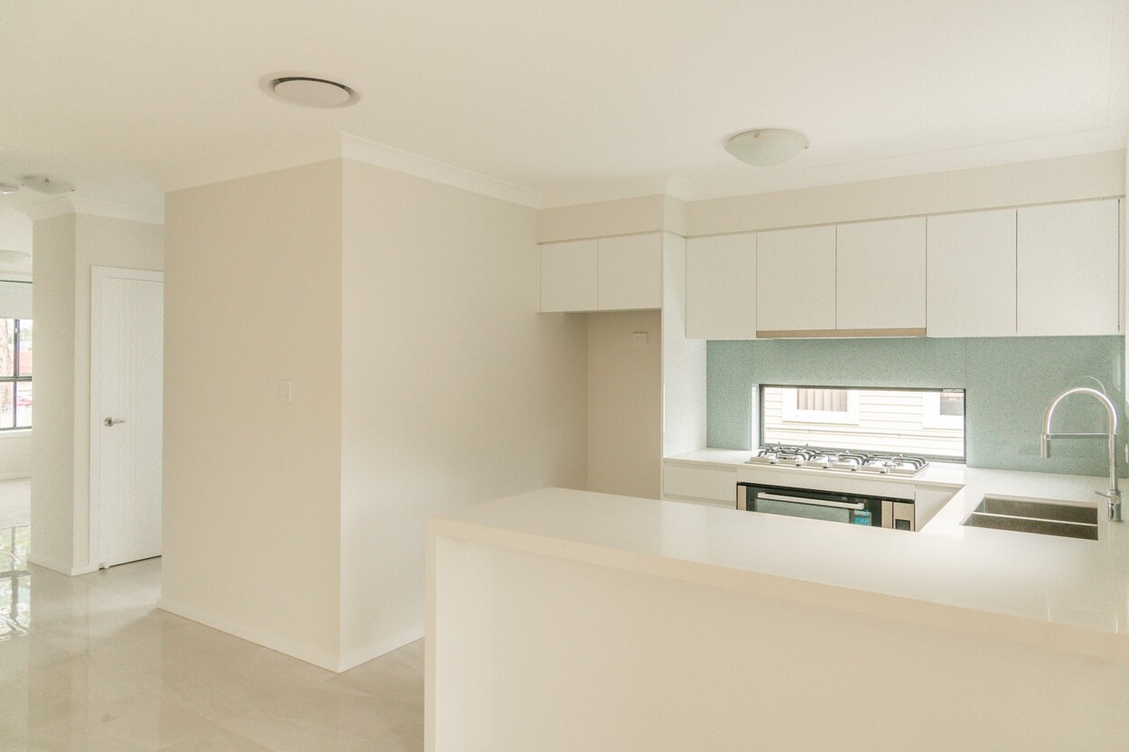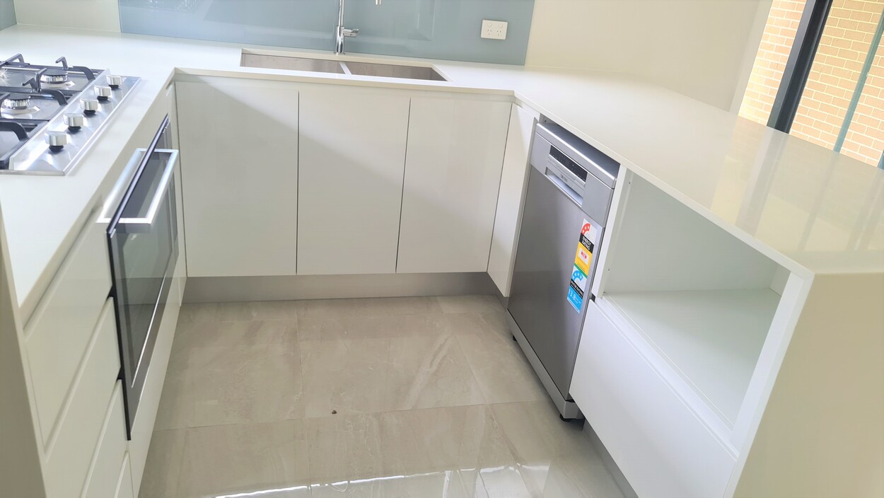 - Kitchen includes stainless steel appliances with 900mm Gas cooktop, dishwasher, Caesarstone benchtops
